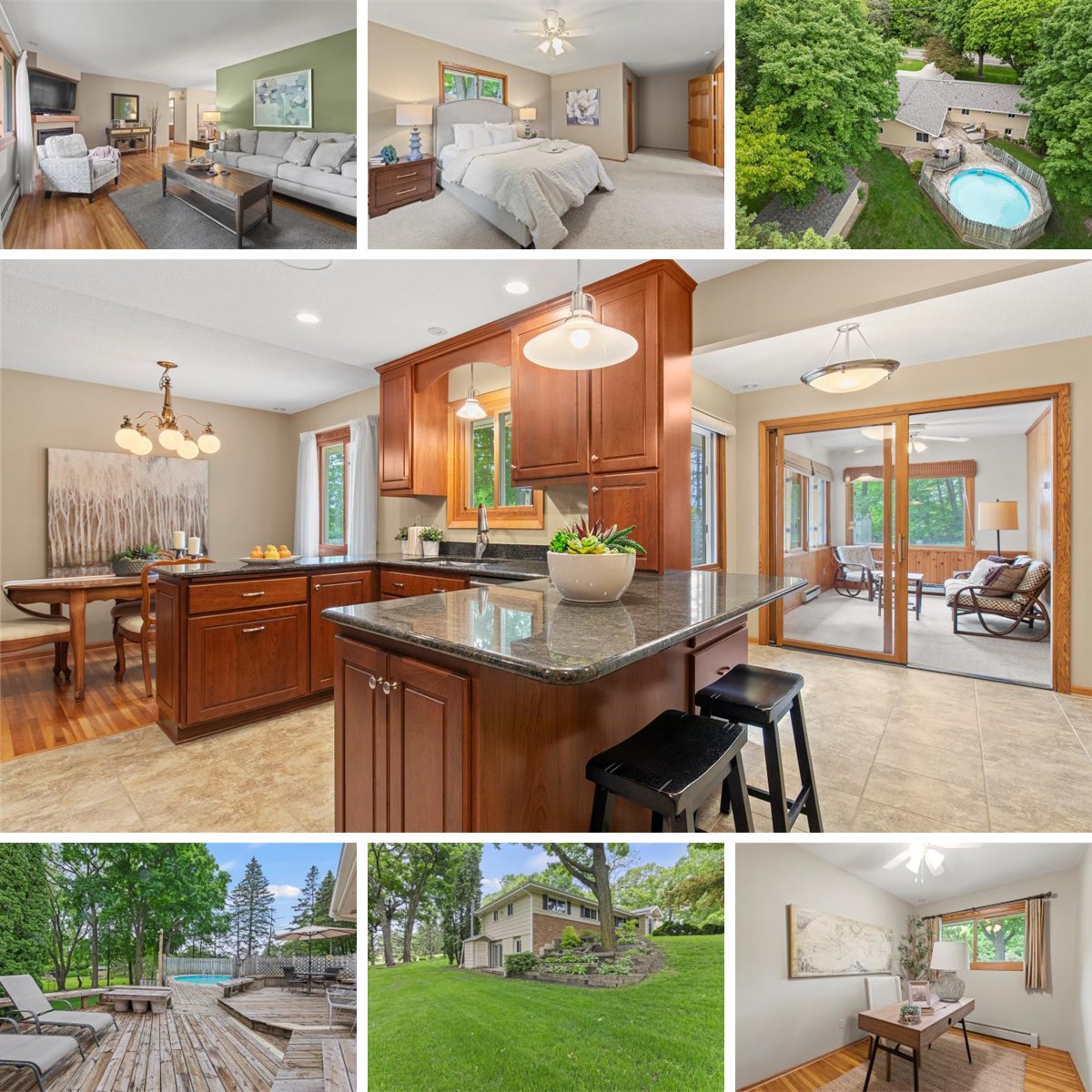 Escape to your own peaceful and private paradise with this well cared for rambler, nestled on a sprawling 1 acre lot with an amazing canopy created by mature trees, in highly sought-after Delano schools! Inside, boasts five beds, three baths, providing comfortable living for all. The main level features four bedrooms, beautiful hardwood floors, private primary suite with walk-through bath, and dual walk-in closets. Updated chef's delight kitchen showcases elegant granite, warm, ample cabinetry, and stainless-steel appliances. Enjoy year-round comfort in the bright and airy four-season room, perfect for relaxing with a cup of coffee or intimate gatherings. The fully finished basement provides additional living space, including a 5th bedroom, 3rd bath, offering flexibility and room to grow. Step outside and discover a true entertainer's dream. A 24-foot diameter above-ground pool, surrounded by an expansive, multi-use deck, promises endless summer fun and extra gathering space. Beyond the pool, you'll find a charming heirloom garden, shed for your tools, a versatile 16x24 workshop with an upper level, perfect for extra storage, a play area, or a quiet retreat. The generous backyard is an abundant space for outdoor activities and quiet enjoyment. This is the perfect blend of tranquility and convenience, ideally located; you’ll enjoy easy access to all the amenities you desire, just minutes from beautiful lakes, park reserves, shopping, and other conveniences, ensuring you have everything you need close to home.